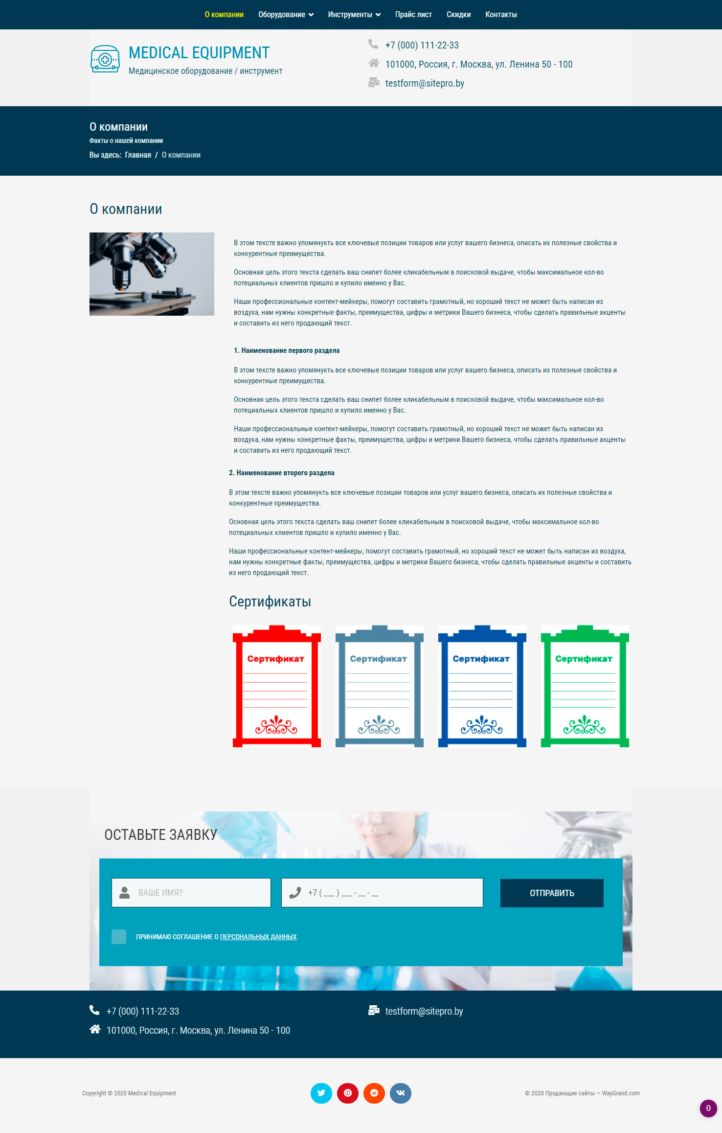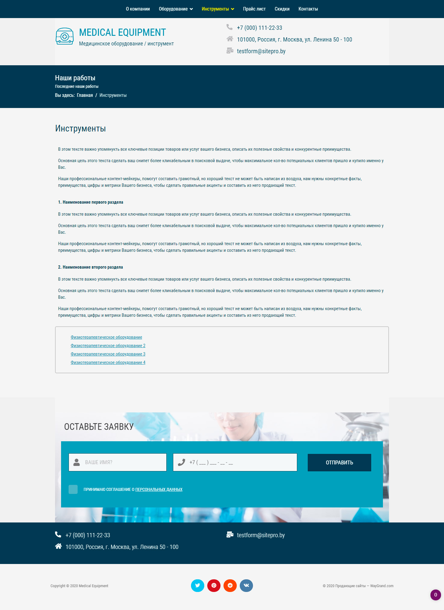 Закажите готовый продающий сайт визитка #1029301 в Балашихе за 5-7 дня «под ключ»: свёрстан, отрисован и готов к рекламе. Тематика шаблона «Медицинское оборудование / инструмент».