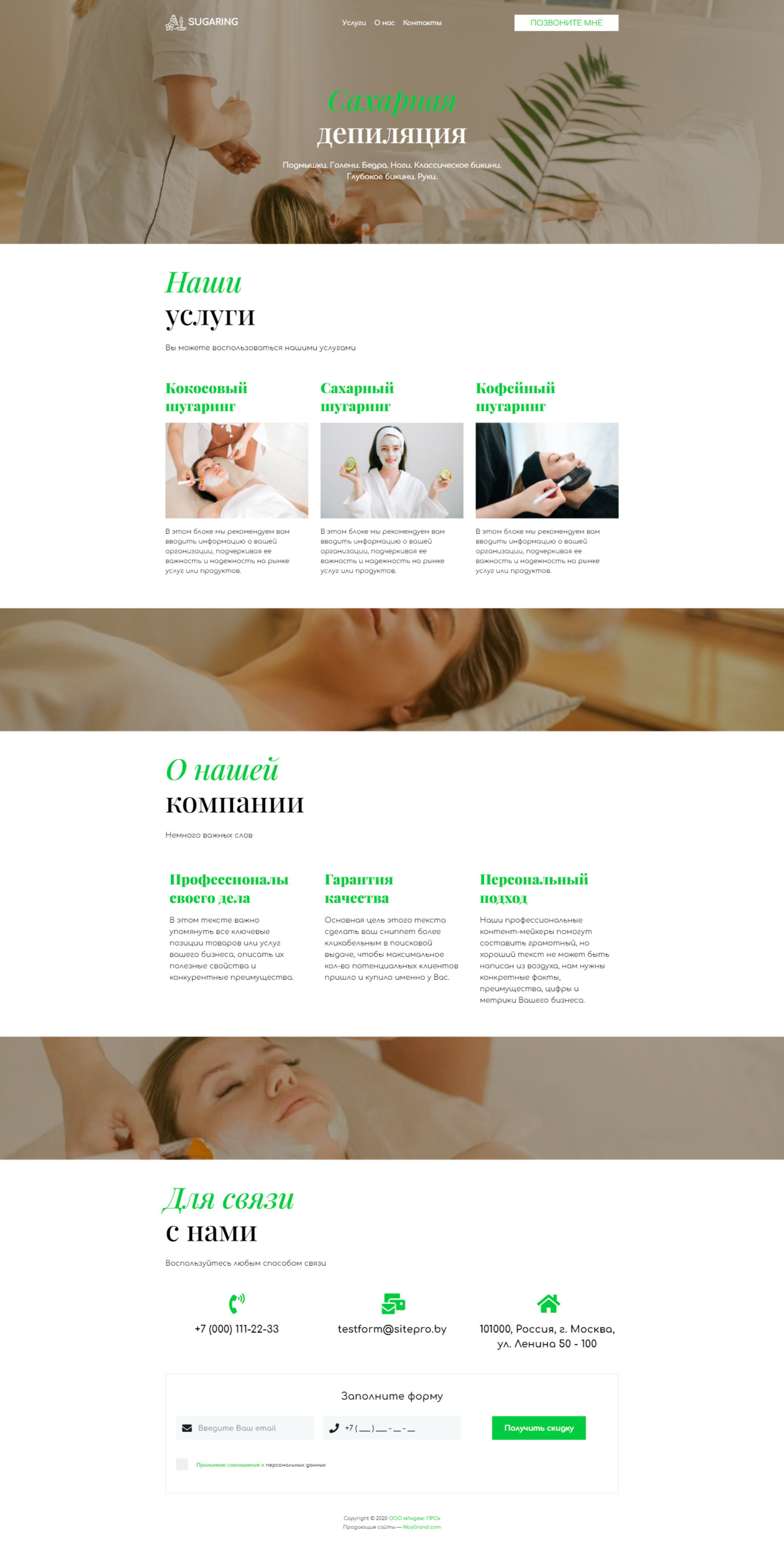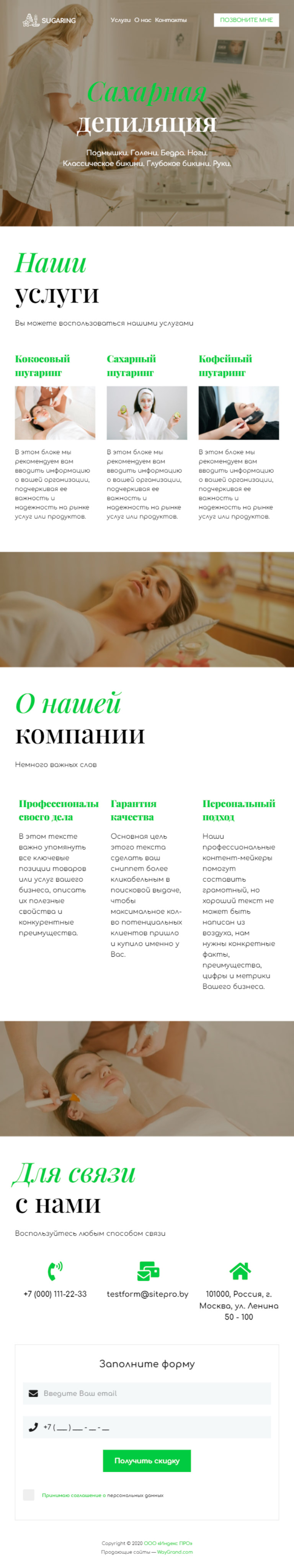 Закажите готовый продающий сайт визитка #1105101 в Балашихе за 5-7 дня «под ключ»: свёрстан, отрисован и готов к рекламе. Тематика шаблона «Сахарная депиляция/Шугаринг».