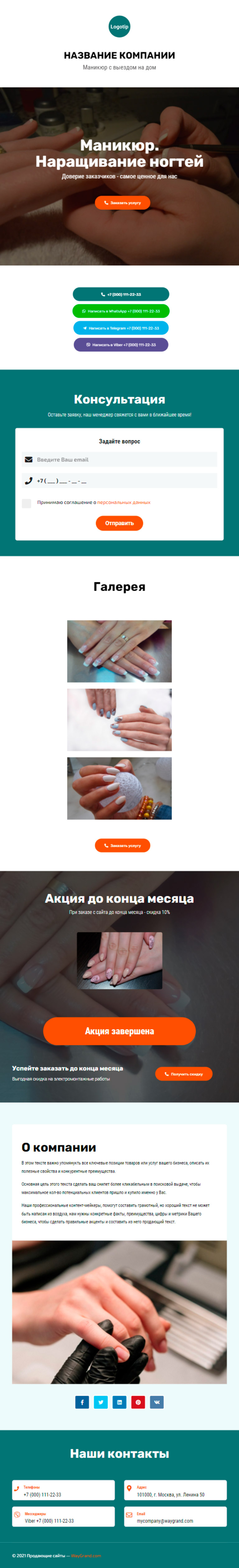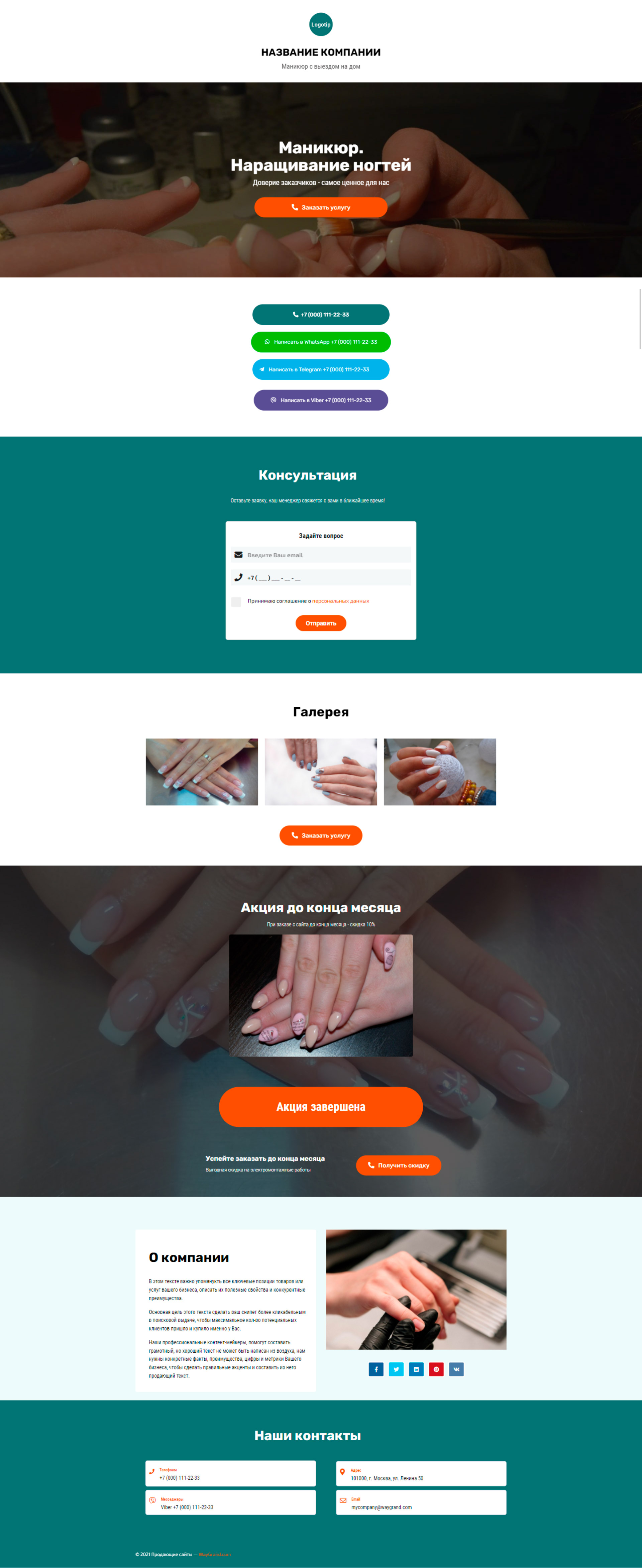Закажите готовый продающий сайт визитка #1107101 в Балашихе за 5-7 дня «под ключ»: свёрстан, отрисован и готов к рекламе. Тематика шаблона «Маникюр. Наращивание ногтей».