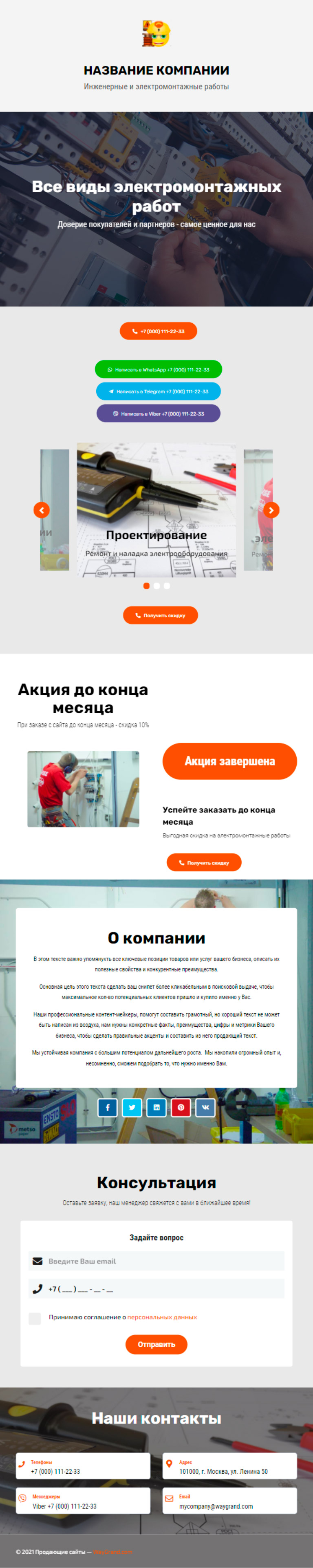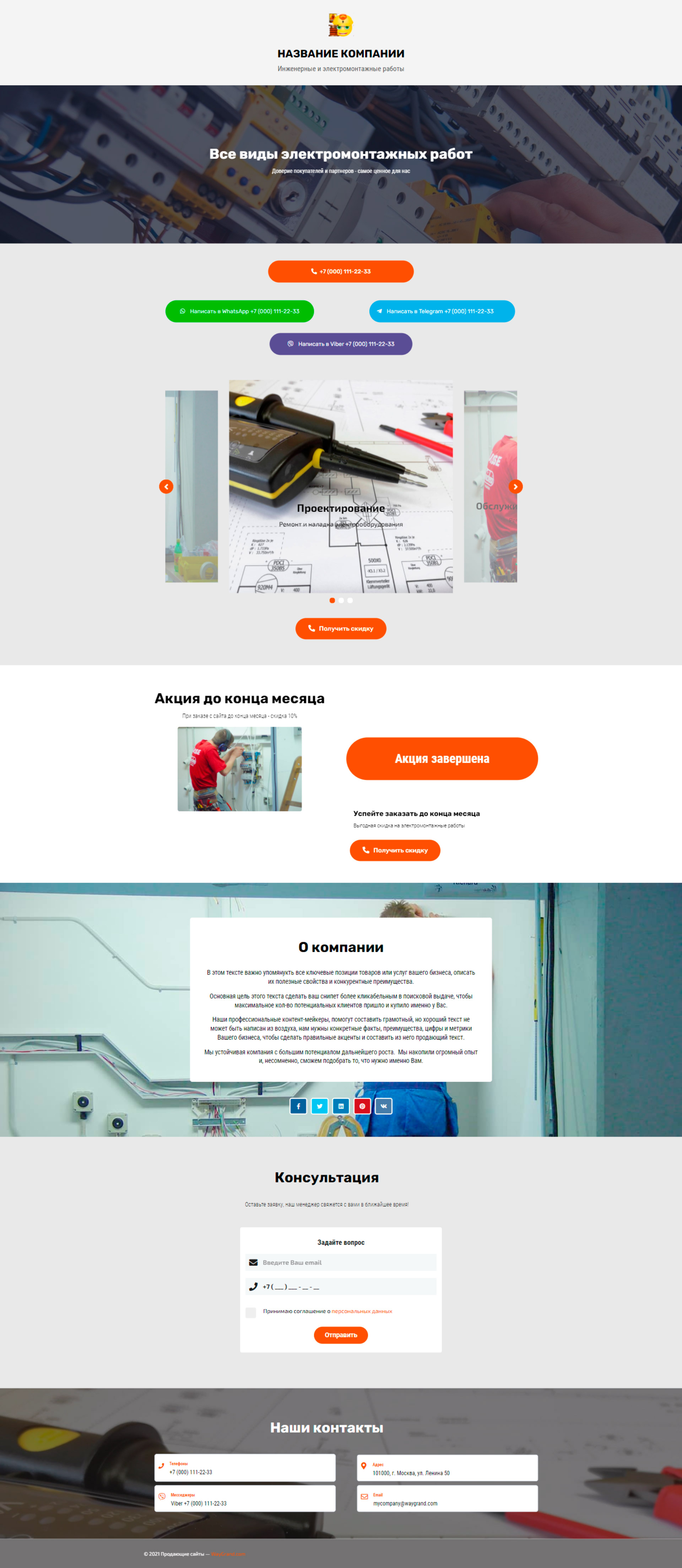 Закажите готовый продающий сайт визитка #2189101 в Балашихе за 5-7 дня «под ключ»: свёрстан, отрисован и готов к рекламе. Тематика шаблона «Инженерные и электромонтажные работы».