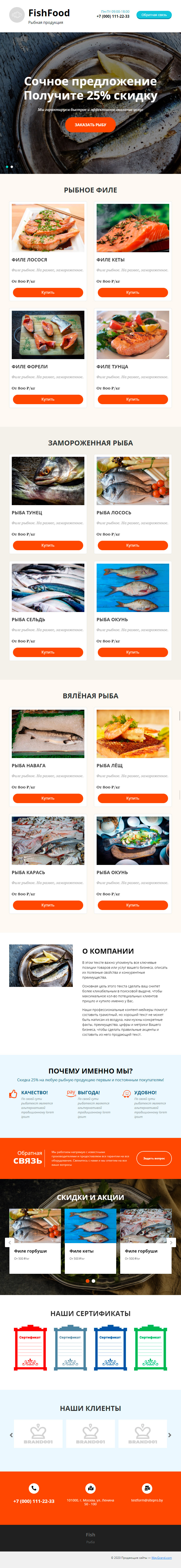 Закажите готовый продающий сайт лендинг #1731201 в Балашихе за 1-3 дня «под ключ»: свёрстан, отрисован и готов к рекламе. Тематика шаблона «Рыбная продукция».