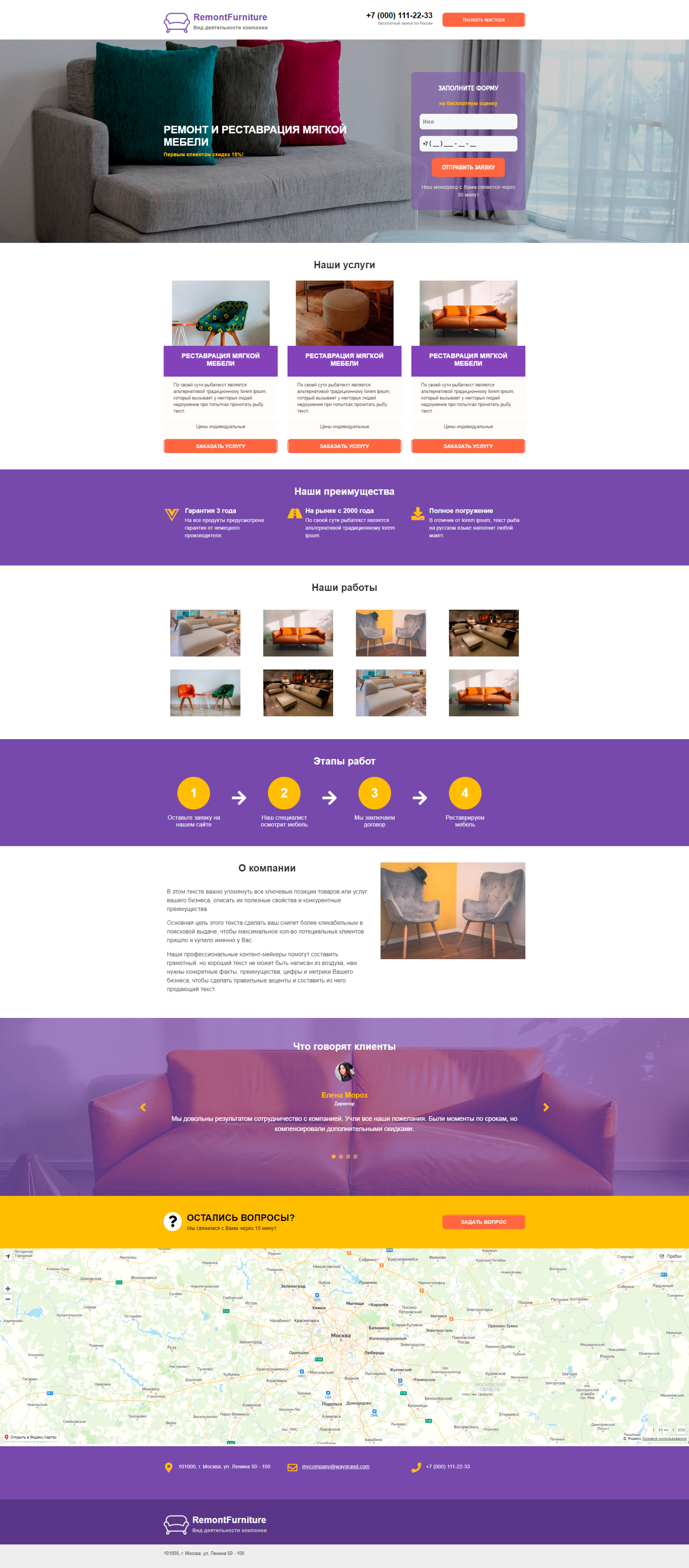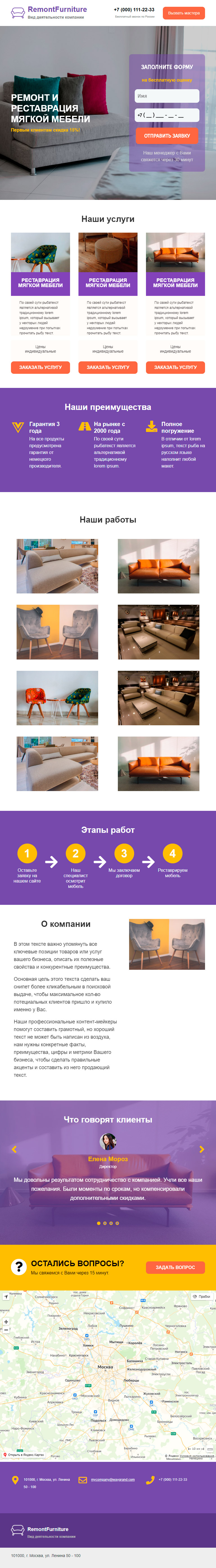 Закажите готовый продающий сайт лендинг #0924201 в Балашихе за 1-3 дня «под ключ»: свёрстан, отрисован и готов к рекламе. Тематика шаблона «Ремонт и реставрация мебели».