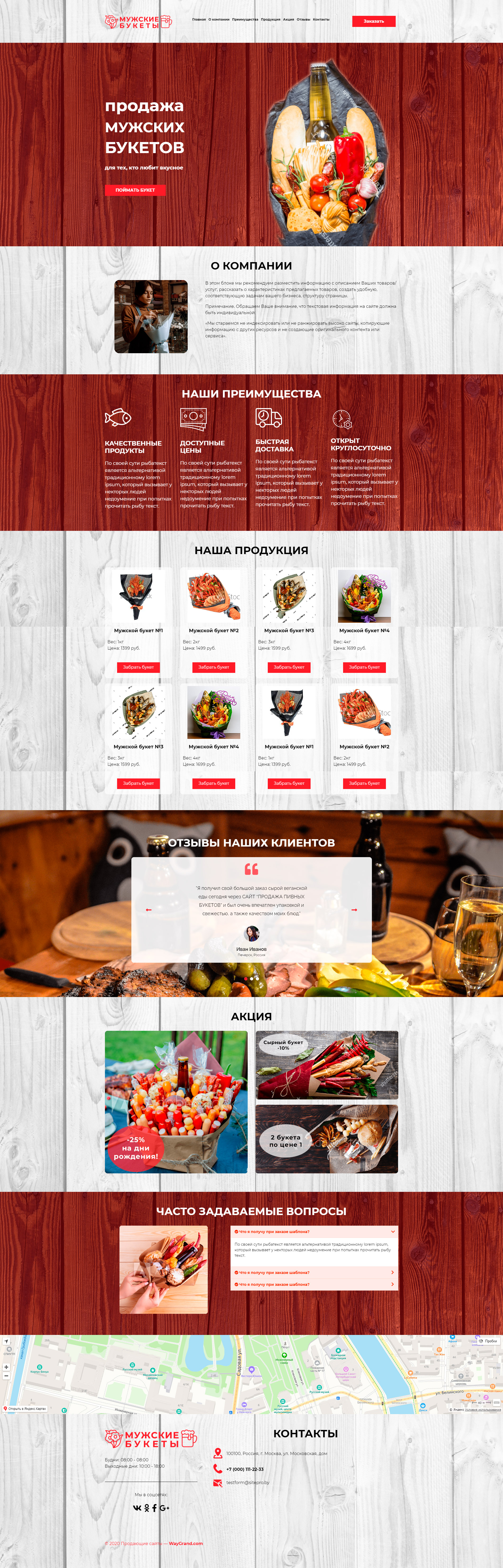 Закажите готовый продающий сайт лендинг #2404204 в Балашихе за 1-3 дня «под ключ»: свёрстан, отрисован и готов к рекламе. Тематика шаблона «Мужские букеты».