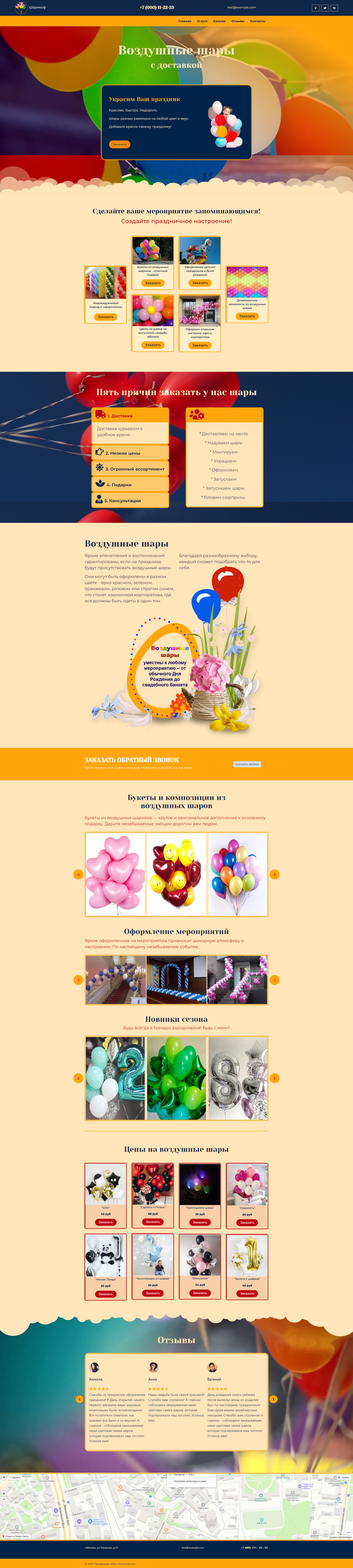 Закажите готовый продающий сайт лендинг #2427202 в Балашихе за 1-3 дня «под ключ»: свёрстан, отрисован и готов к рекламе. Тематика шаблона «Воздушные шары».