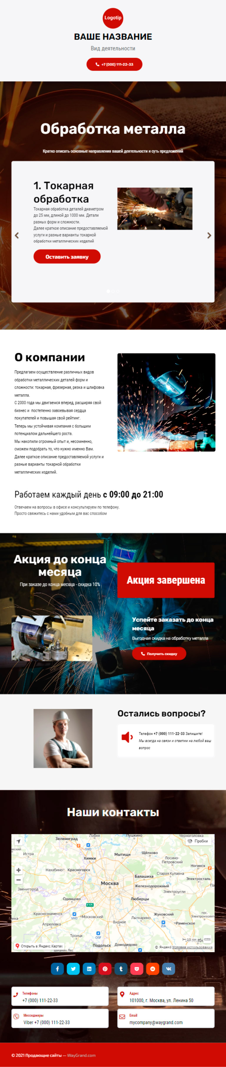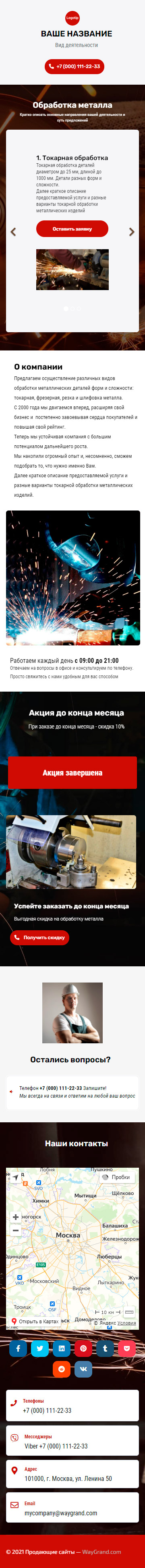 Закажите готовый продающий сайт визитка #1209101 в Балашихе за 5-7 дня «под ключ»: свёрстан, отрисован и готов к рекламе. Тематика шаблона «Обработка металла».