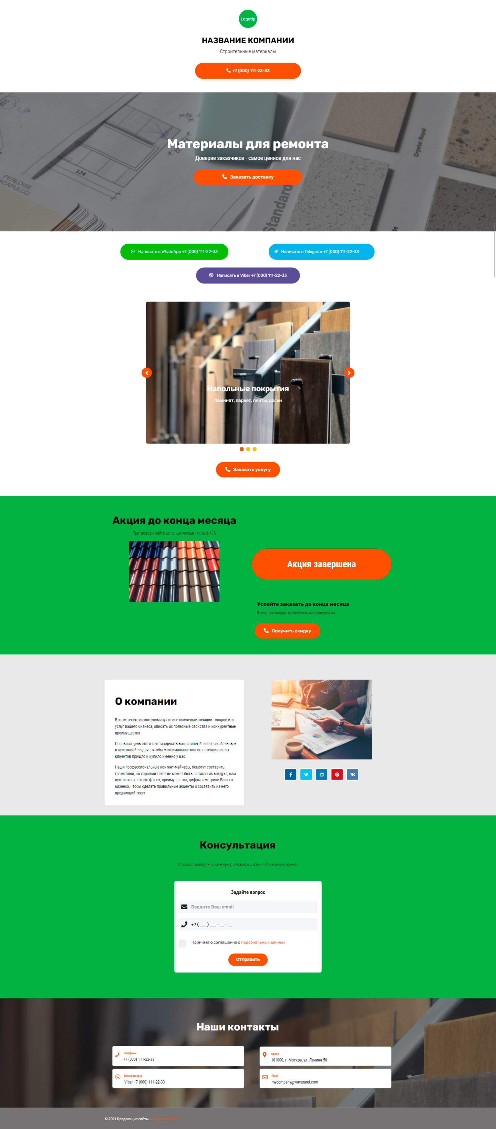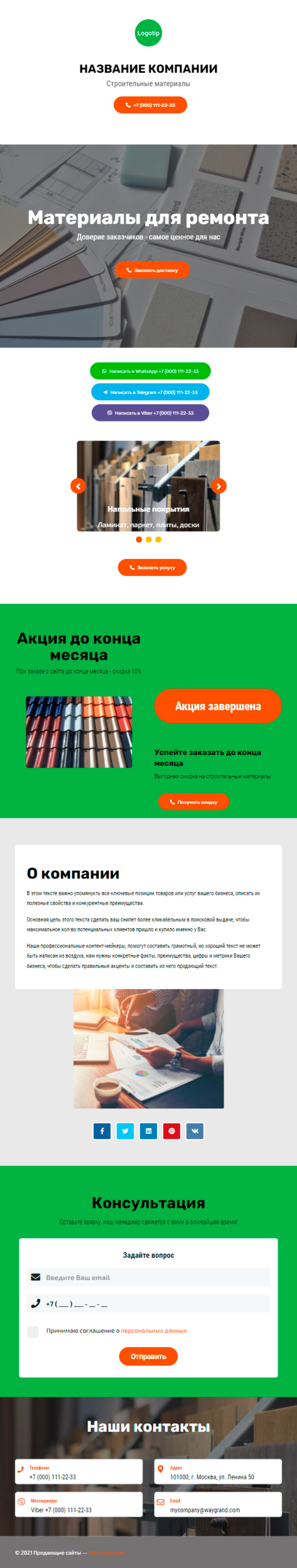 Закажите готовый продающий сайт визитка #2050101 в Балашихе за 5-7 дня «под ключ»: свёрстан, отрисован и готов к рекламе. Тематика шаблона «Строительные материалы».