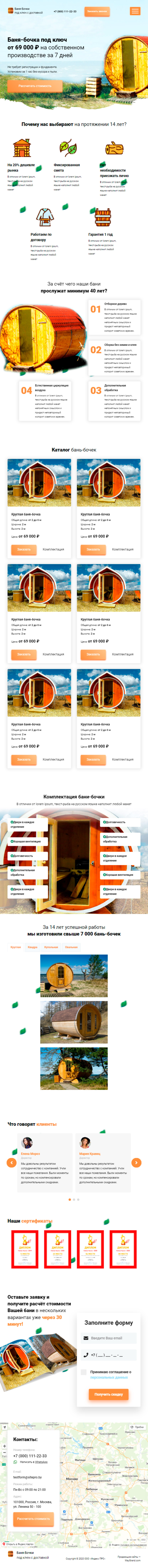 Закажите готовый продающий сайт лендинг #2172204 в Балашихе за 1-3 дня «под ключ»: свёрстан, отрисован и готов к рекламе. Тематика шаблона «Баня-бочки».