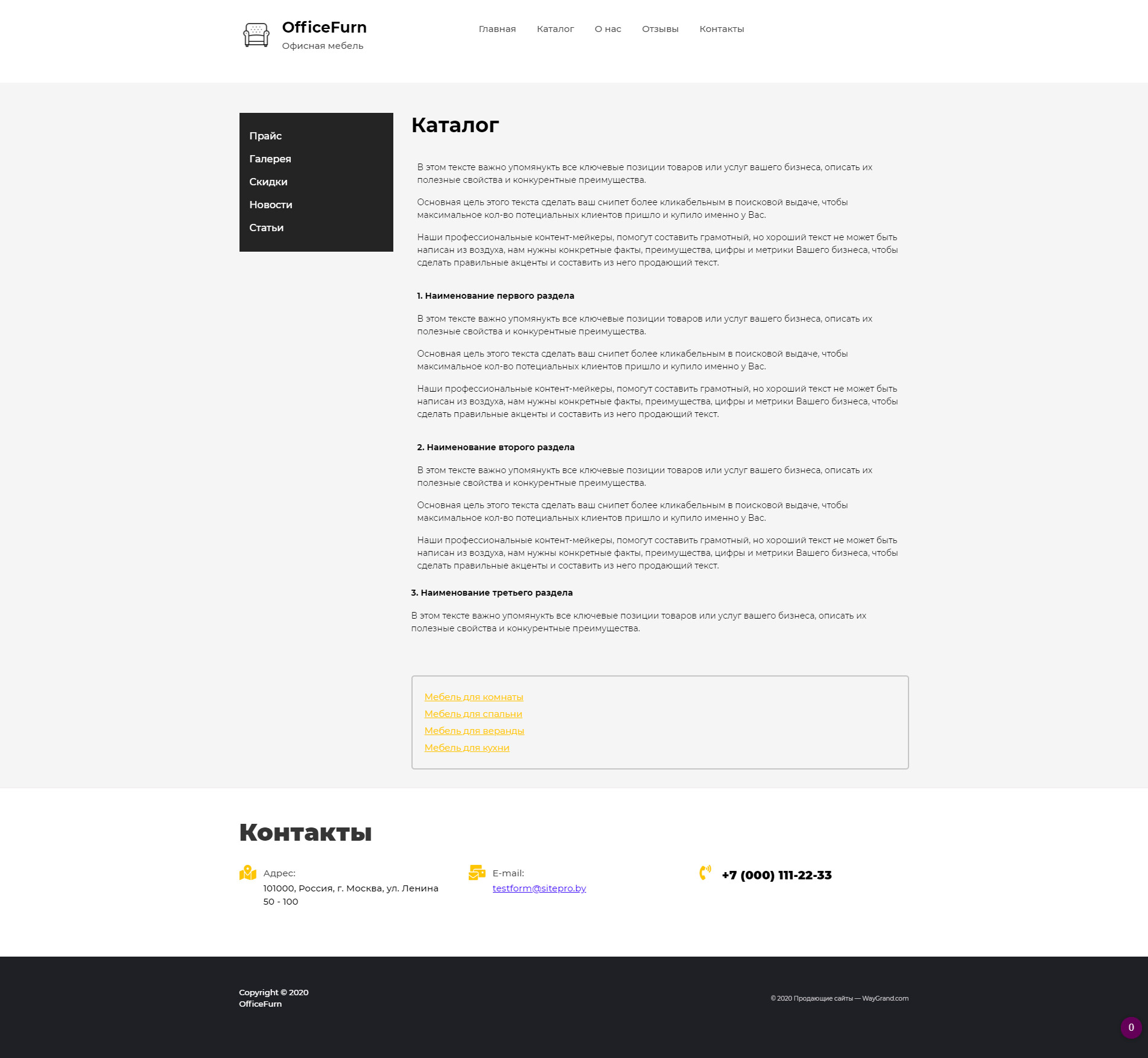 Закажите готовый продающий сайт визитка #0921301 в Балашихе за 5-7 дня «под ключ»: свёрстан, отрисован и готов к рекламе. Тематика шаблона «Офисная мебель».