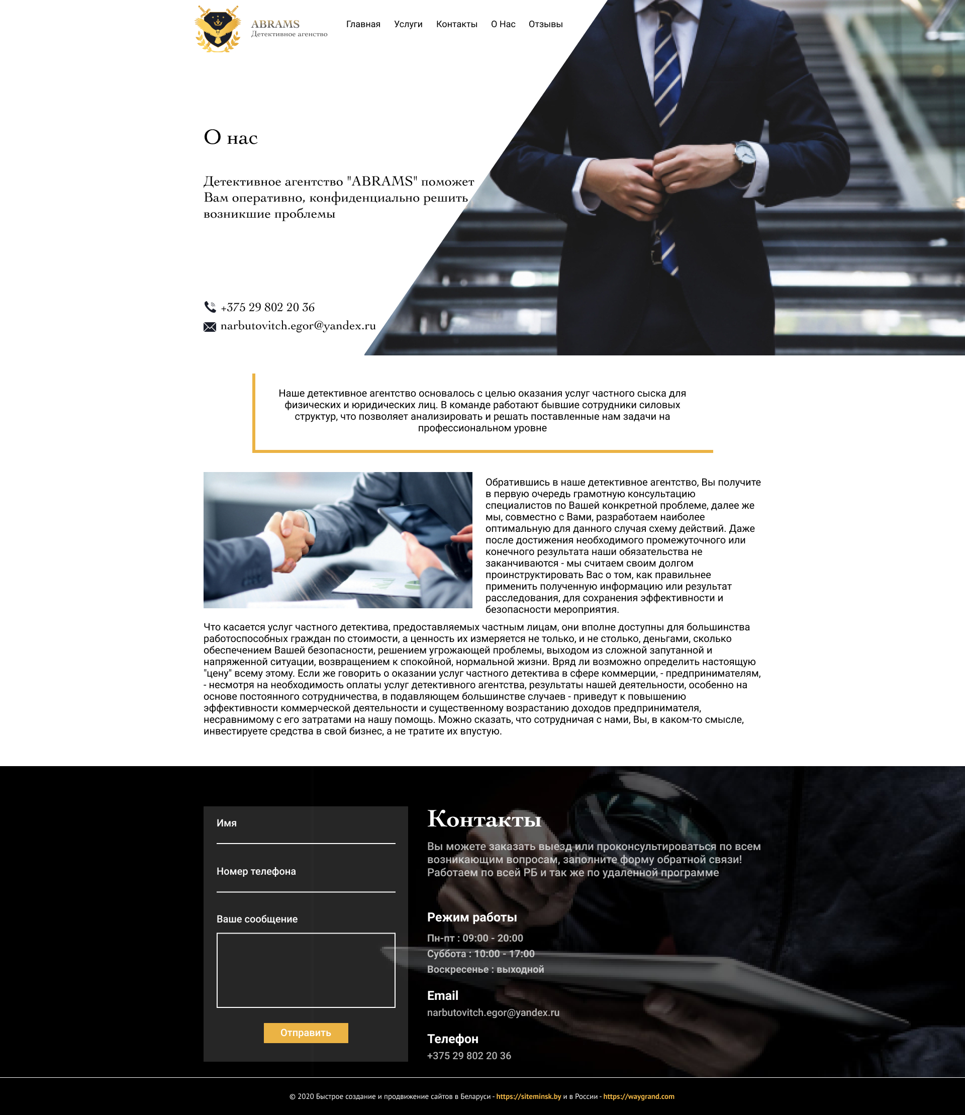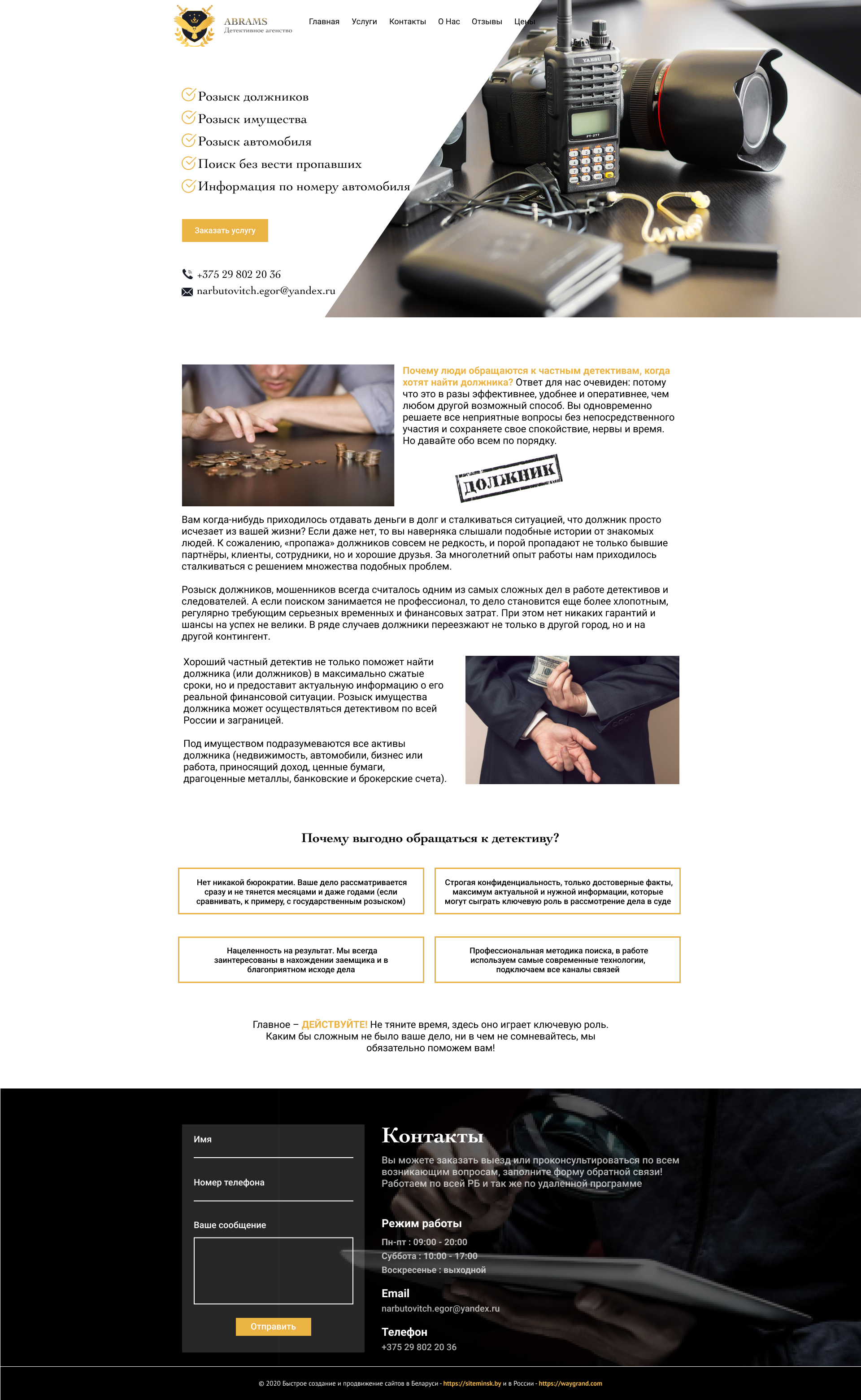 Закажите готовый продающий сайт визитка #239 в Балашихе за 5-7 дня «под ключ»: свёрстан, отрисован и готов к рекламе. Тематика шаблона «Частное детективное агентство».